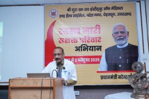उन्होंने बताया कि श्री गुरु राम राय इंस्टीट्यूट ऑफ मेडिकल एंड हेल्थ साइंसेज एवं श्री महंत इन्दिरेश अस्पताल 17 सितम्बर से 2 अक्टूबर 2025 तक चलने वाले “व्यापक स्वास्थ्य पखवाड़ा कार्यक्रम” में उत्तराखंड स्वास्थ्य विभाग के साथ मिलकर विभिन्न स्थानों पर निःशुल्क स्वास्थ्य शिविरों का आयोजन कर रहा है।